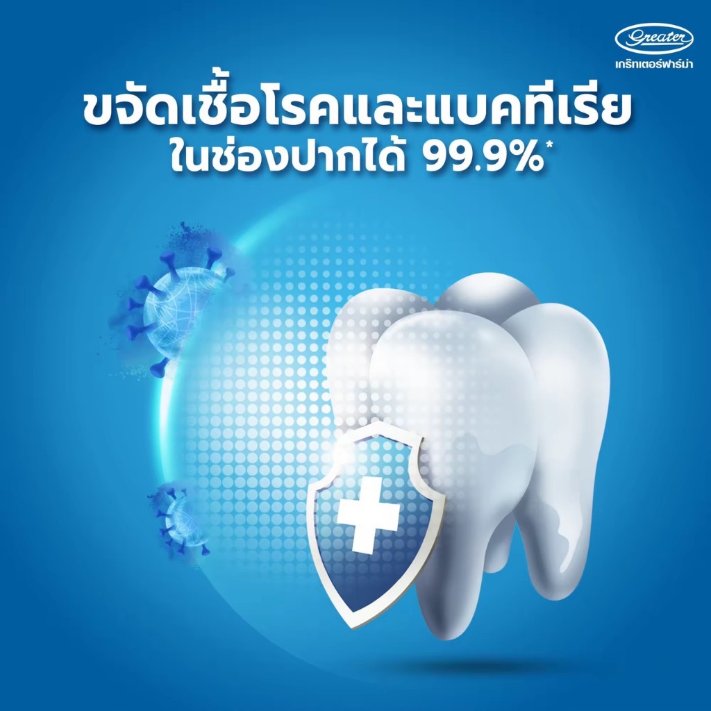 ใช้บ้วนปากเพื่อขจัดแบคทีเรียในช่องปาก อันเป็นสาเหตุของการเกิดคราบหินปูนและกลิ่นปาก ลมหายใจสะอาด สดชื่น